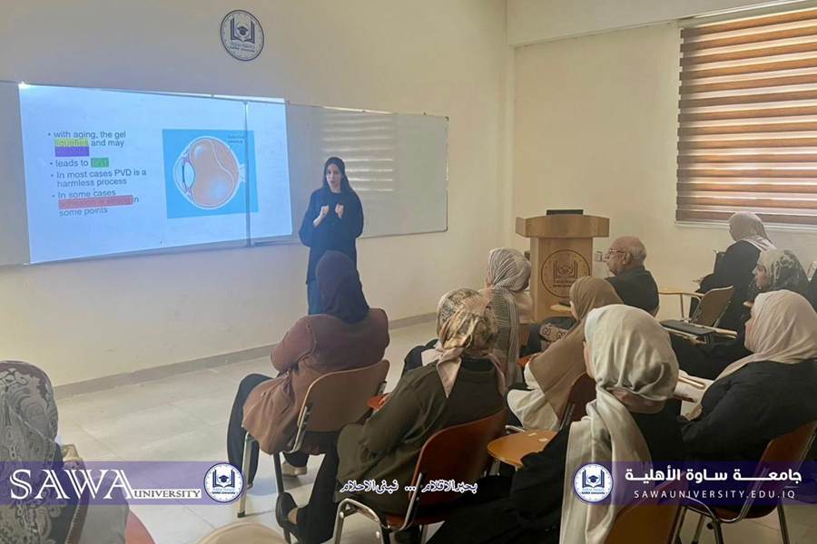 تطرقت الندوة إلى شرح حالة انفصال الشبكية وأهم أسبابها وأنواعها، مبينةً أنها تحدث نتيجة تمزق أو شد أو تسرب سوائل خلف الشبكية، مما يؤدي إلى فقدان الرؤية التدريجي أو المفاجئ، كما تناولت أهم الأعراض والعلامات السريرية وطرق التشخيص والعلاج، مثل استخدام الليزر أو الجراحة، مع التأكيد على أهمية الكشف المبكر والمتابعة المنتظمة للحفاظ على البصر.