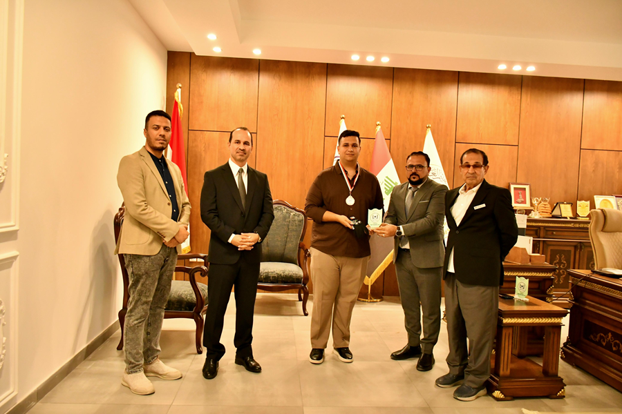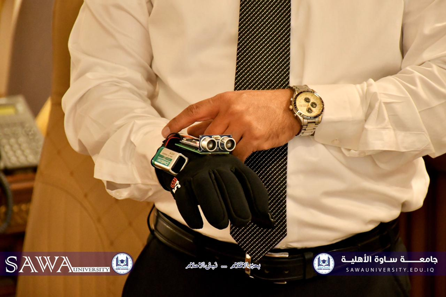تعزيزا لمبدأ تثمين جهود المتميزين والمبدعين من منتسبيها، كرم السيد رئيس مجلس الادارة الدكتور مضر عبدالله الظالمي مجموعة من طلبة قسم الأجهزة الطبية في الكلية التقنية الهندسية الذين صنعوا جهاز مساعدة فاقدي البصر (الكف الالكتروني).