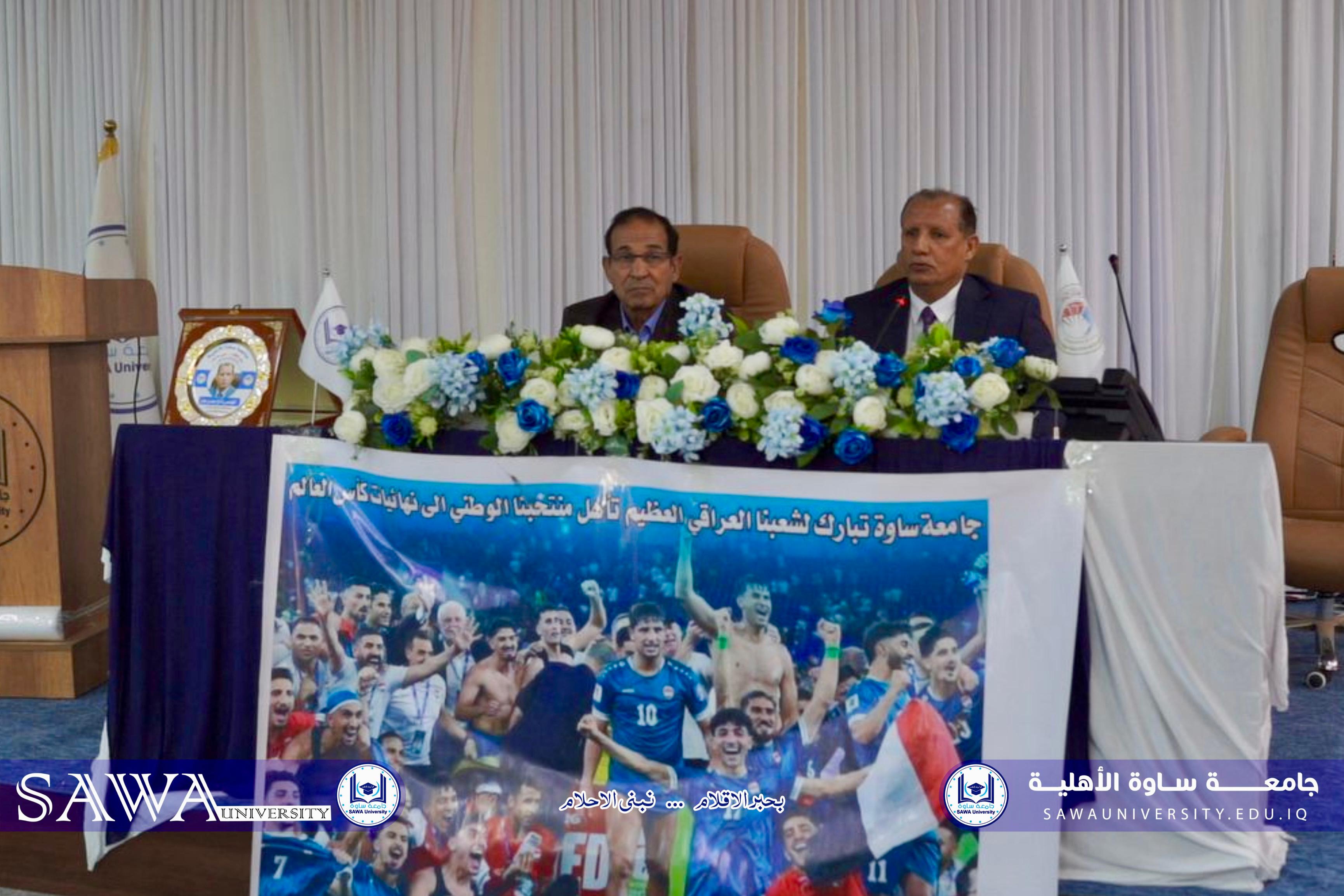 بمناسبة بلوغ منتخبنا الوطني نهائيات البطولة، أقامت كلية التربية احتفالية خاصة بهذه المناسبة، بحضور عميدة الكلية الأستاذ المساعد الدكتورة ندى سامي ناصر.