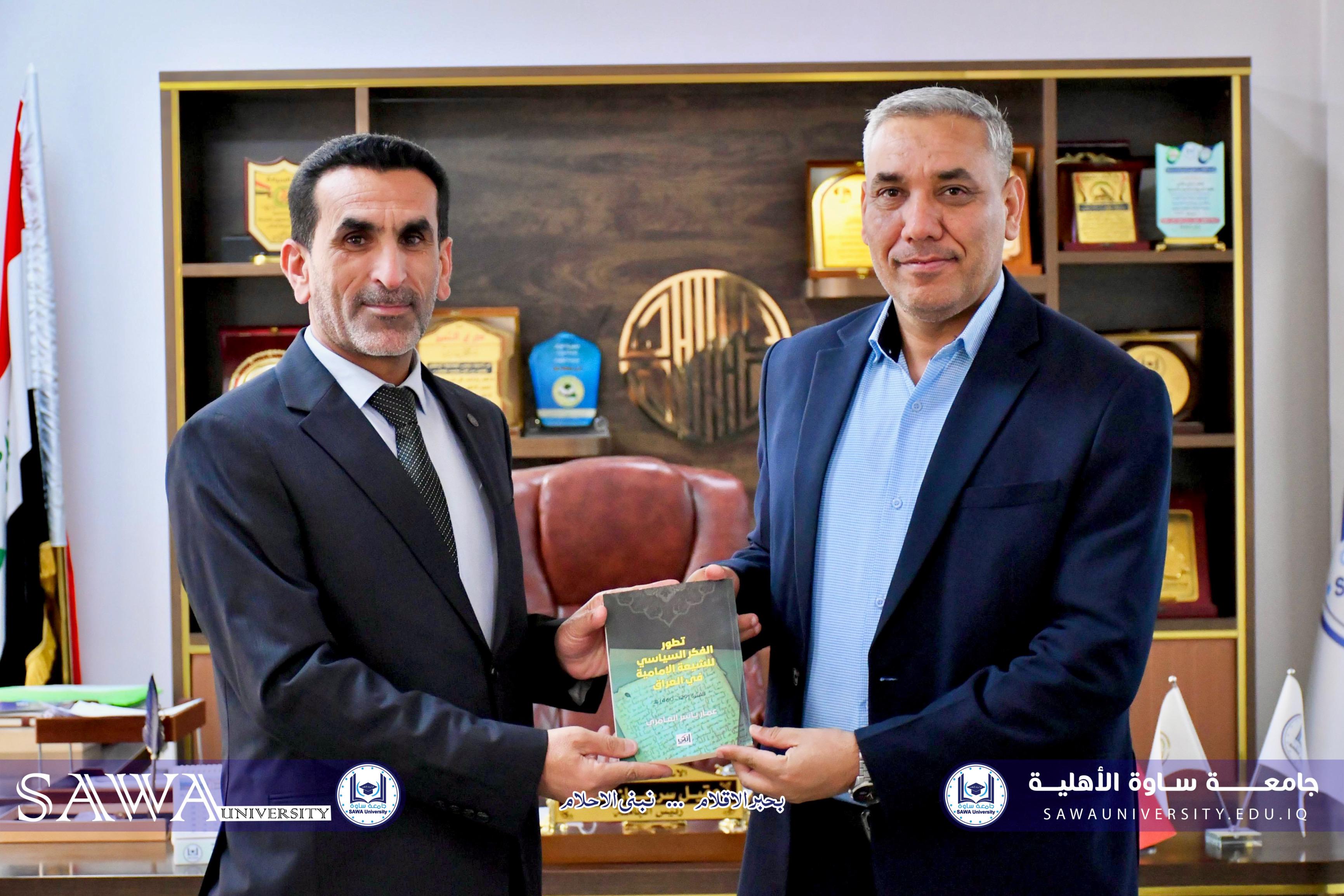 التقى السيد رئيس الجامعة الأستاذ الدكتور عقيل سرحان محمد الغزي السيد سكرتير تحرير (مجلة السماوة الكبرى) الباحث عمار ياسر العامري، الذي أهدى له نسخة من كتابه (تطور الفكر السياسي للشيعة في العراق 329 – 460).