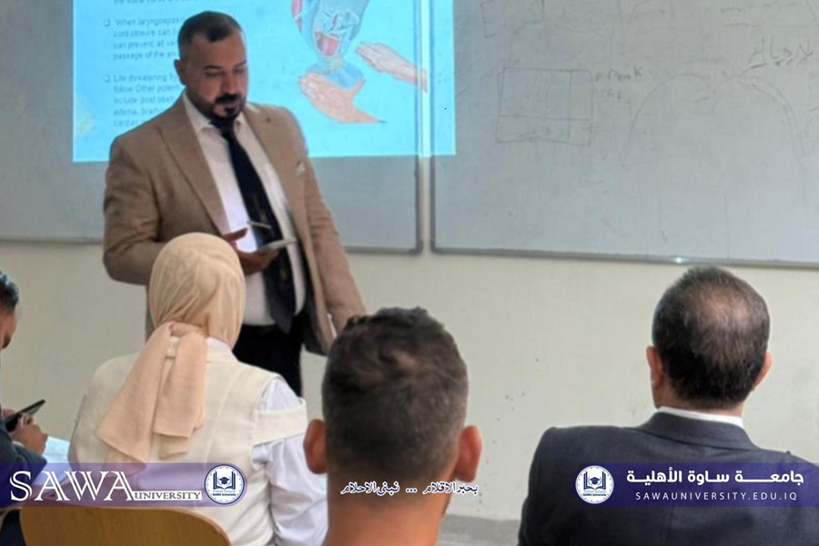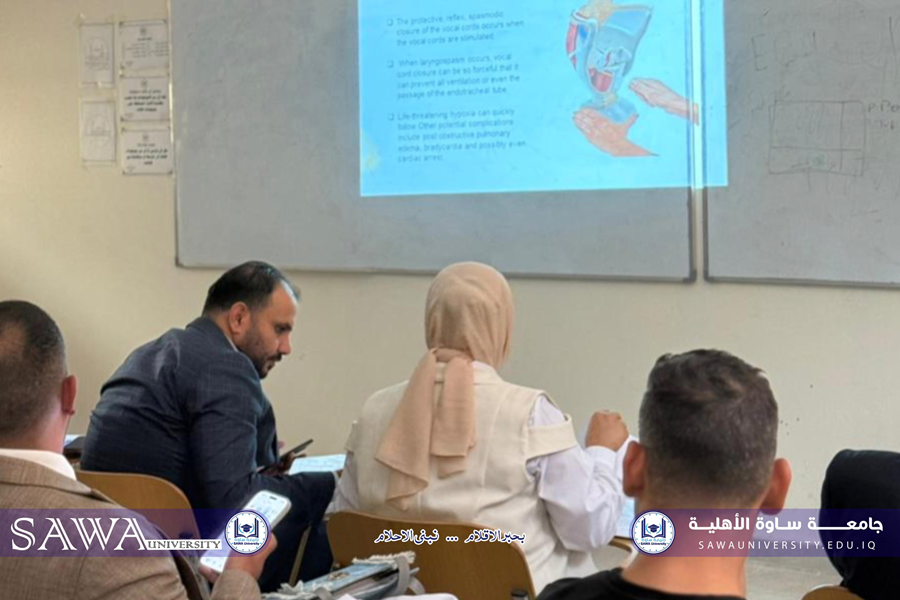 تنفيذا للمنهاج الذي أعدته عمادة كلية التقنيات الصحية والطبية، أقام قسم تقنيات التخدير، وبالتعاون مع قسم النشاطات الطلابية، دوة علمية بعنوان (تشنج الحنجرة بعد إزالة انبوب الرغامي ) في تمام الساعة العاشرة من صباح يوم الاربعاء الموافق 22/10/2025، شارك فيها: