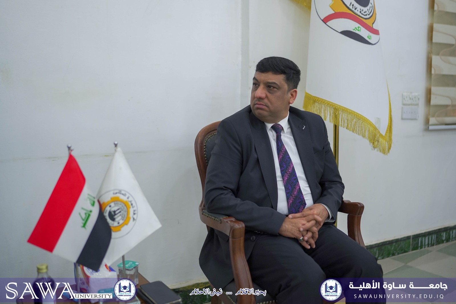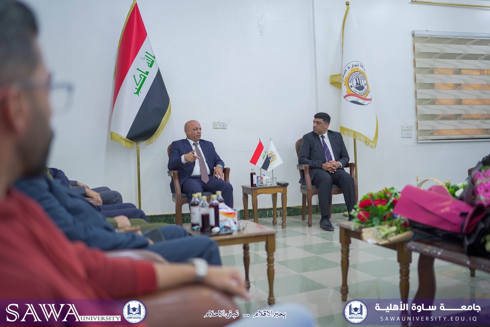 أجرى وفد من جامعة ساوة الأهلية برئاسة مدير قسم الإعلام والاتصال الحكومي (أ.م.د أنور إبراهيم عبد) زيارة إلى غرفة تجارة المثنى، لتقديم التهاني إلى السيد دريد الأعرجي بمناسبة انتخابه رئيساً للغرفة.