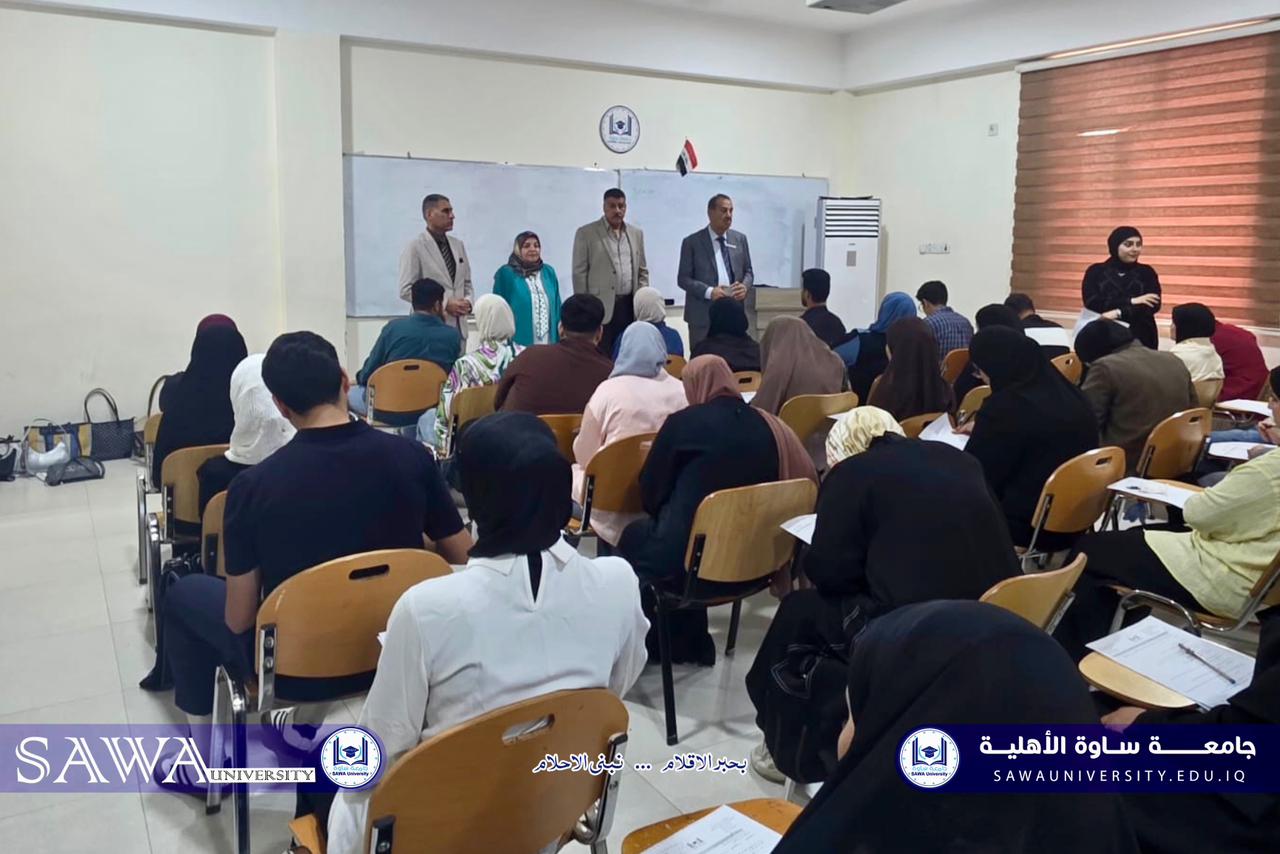 زار مساعدا رئيس جامعة ساوة الأهلية كلية التربية لمتابعة سير الامتحانات الفصلية في قسم اللغة الإنكليزية، وذلك بحضور عميد الكلية ومعاون العميد .